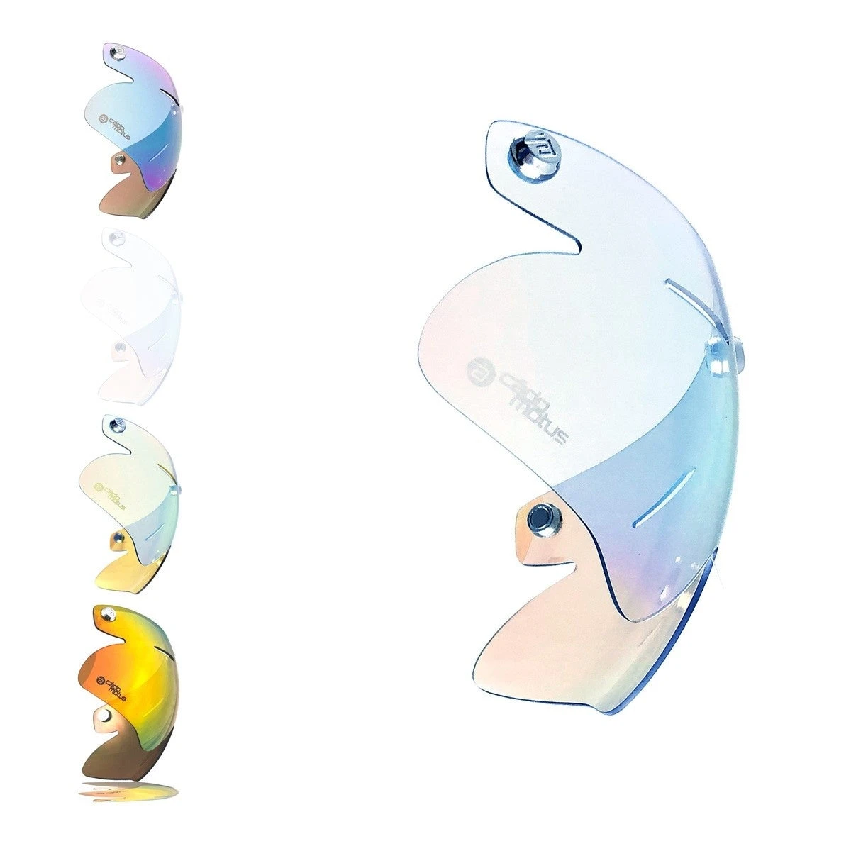 Higher quality visors like Cdomotus SKY lens are tapered and correct the prism effect which distorts the accuracy of vision in lower-priced sunglasses.
