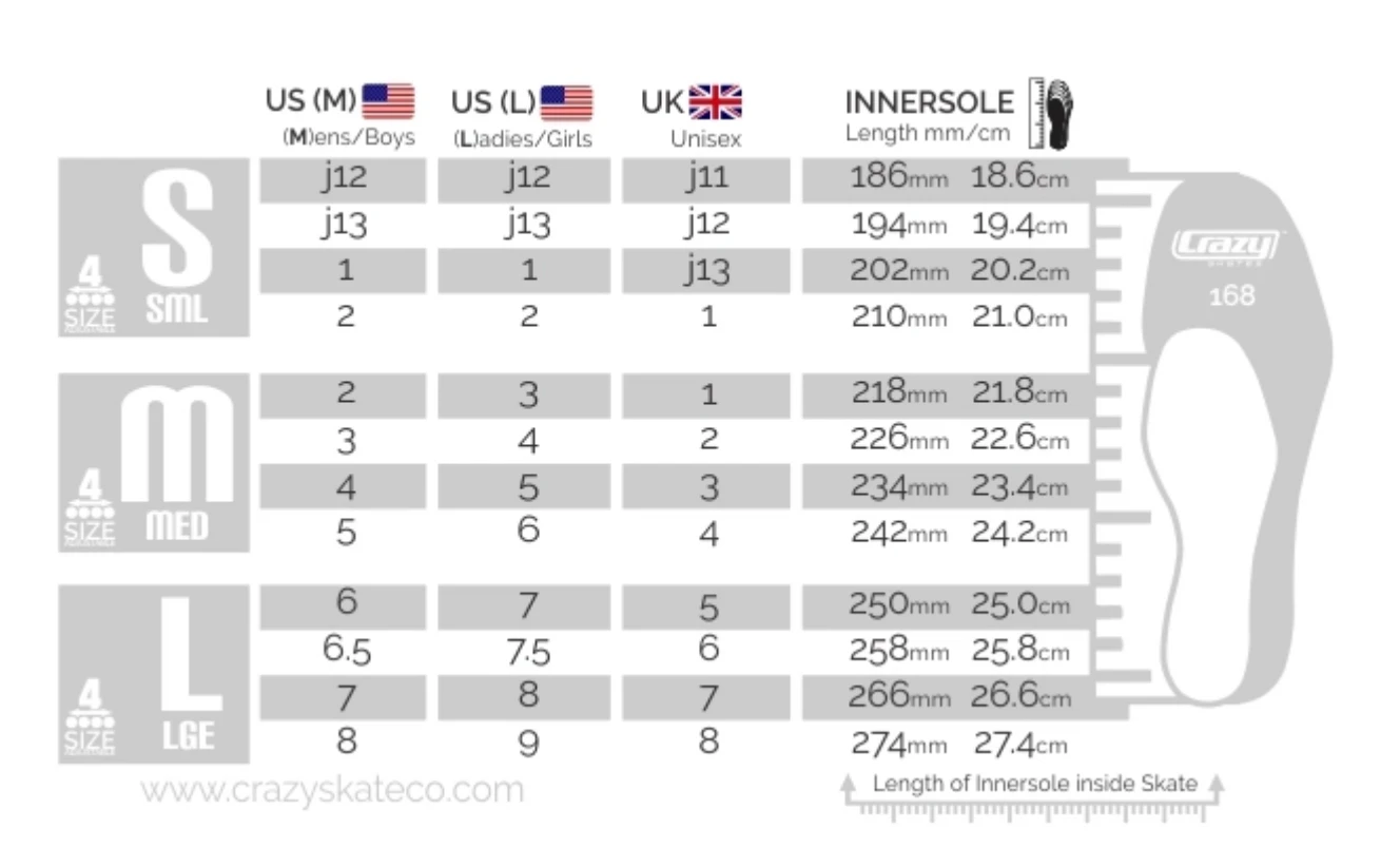 The Crazy 168 is the best all round skate for performance and fun – All in a skate that adjusts 4 sizes to grow with your feet. This gives you certainty in choosing the right size fornow, knowing there will be room to grow in the future.