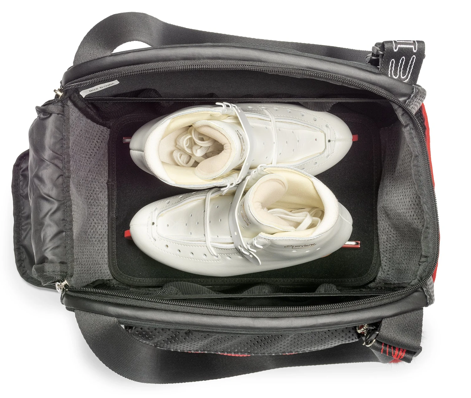 In the main bag theres room for a pair of skates (ice or roller) and two side mesh pockets to keep things tidy.