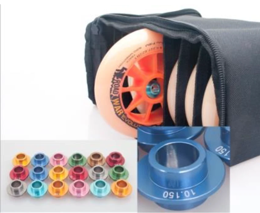 Sturdy skate wheel bag made in strong nylon/pvc. This durable bag fits a set of 100 or 110mm inline wheels. Thefull lid zipped closure ensures easy access to pack your wheels and includes a handle for easy carrying.