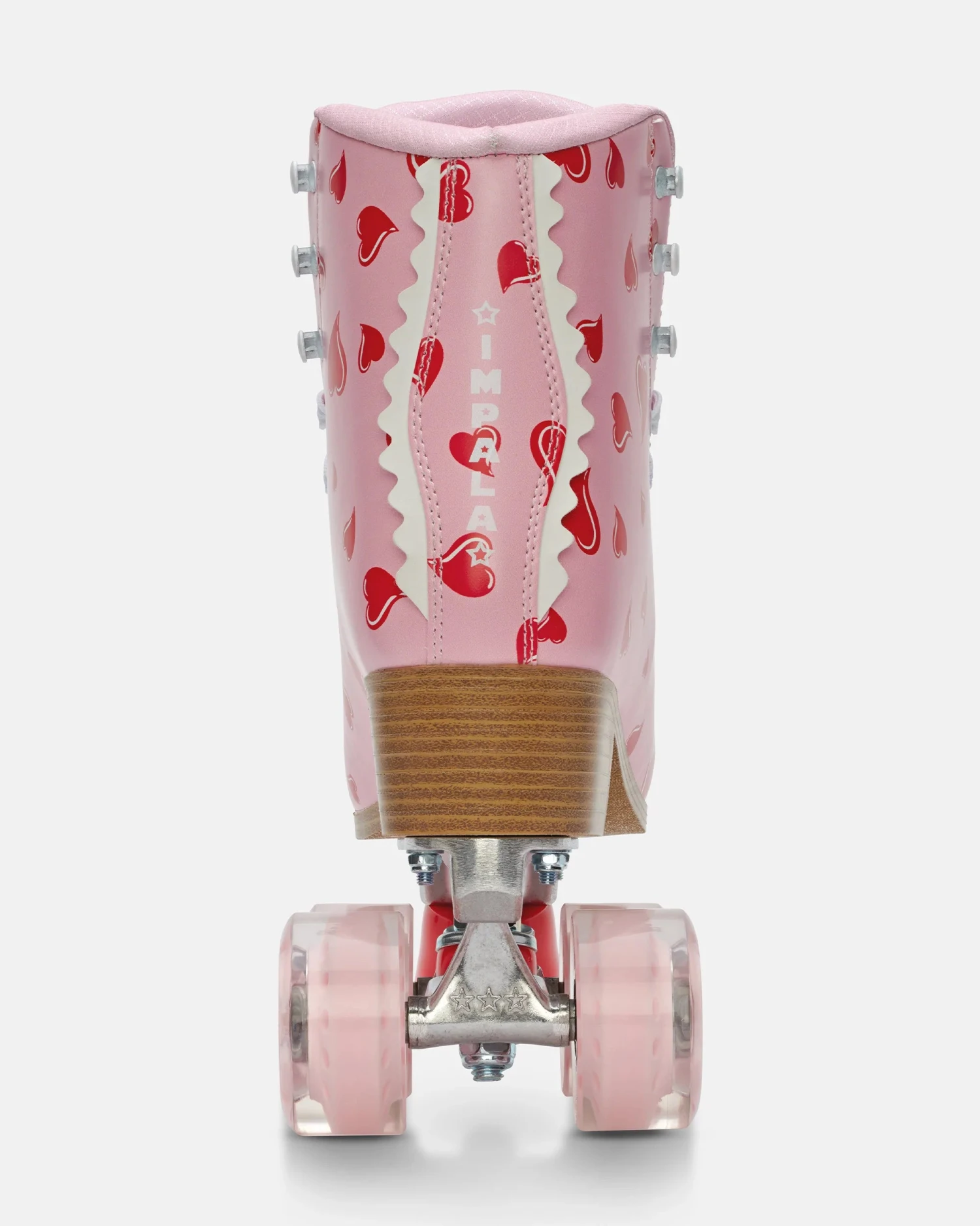 Our Impala Falling Hearts Rollerskate features a padded collar and tongue designed for your comfort, with a water-resistant boot offering maximum ankle support. This Impala Rollerskate is made for vegan-friendly materials.