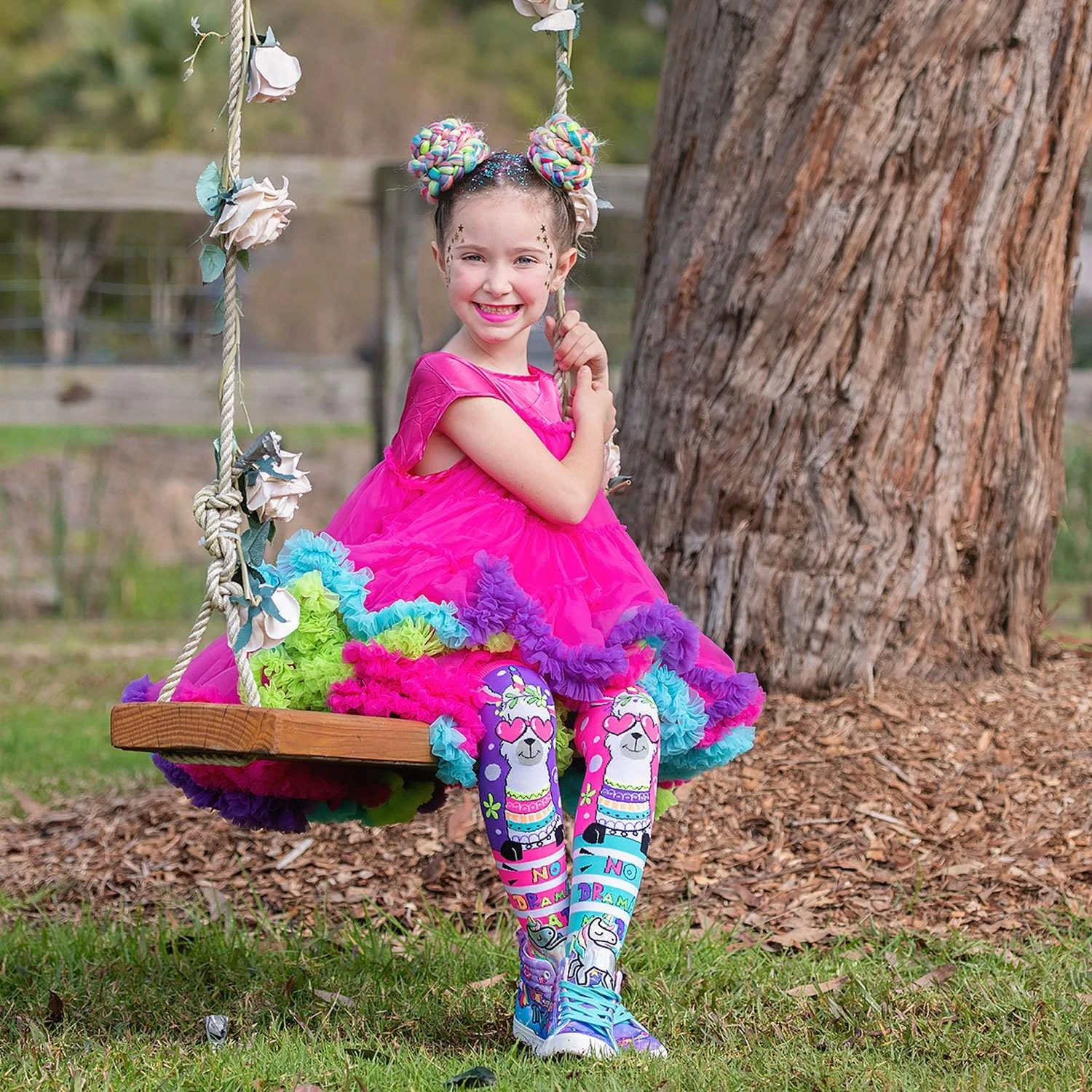 MADMIAs Llama Drama socks are mix-match pair in pink, blue and purple, with a cool Llama print wearing sunglasses, and topped off with Llama drama text.