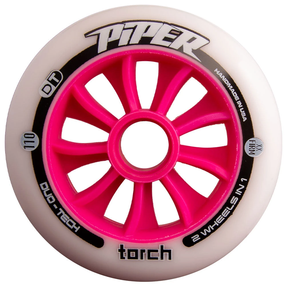 We have listened to our customers around the worldTorch affords skaters of all levels one wheel for both track and road. Pipers new Divergent core is designed to have stableflex-returnto enhance steerability or ease of skating. Divergent is made with reinforced engineered Glassfiber content that provides responsive handling and steerability, not available in our previous track wheels. Duo Technology is our central engine that separates us from others.