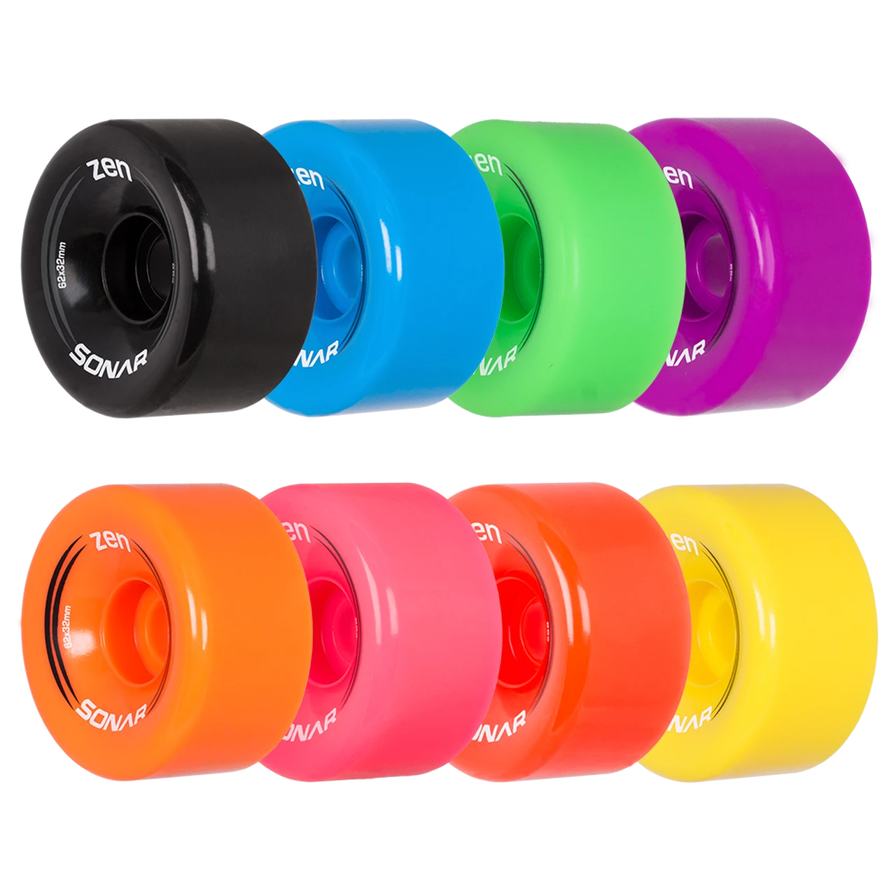 - DURABLE FOR MILES OF USE – The Sonar Zen roller skate wheels’ durable urethane will give you long-lasting grip whether on a rink floor, sidewalk, or street.